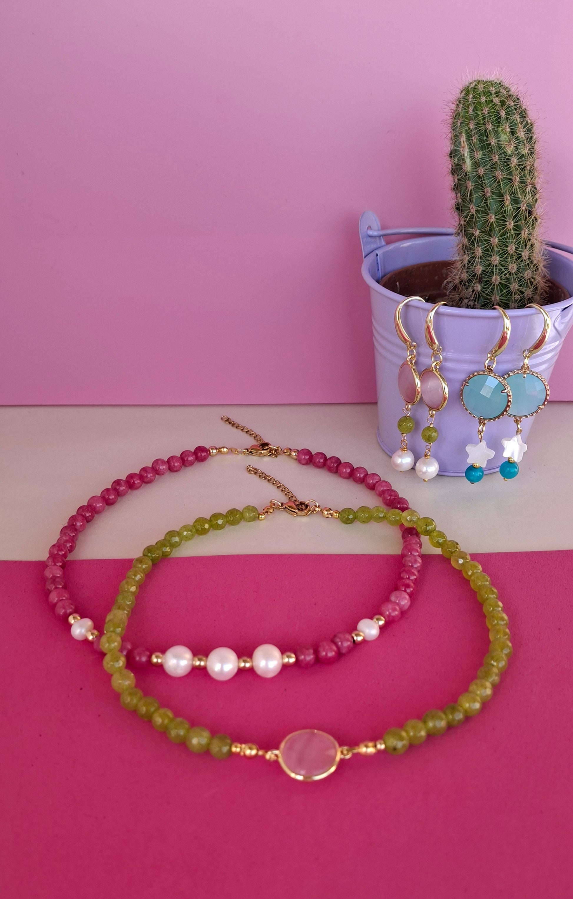 Girocollo giada e perle di fiume