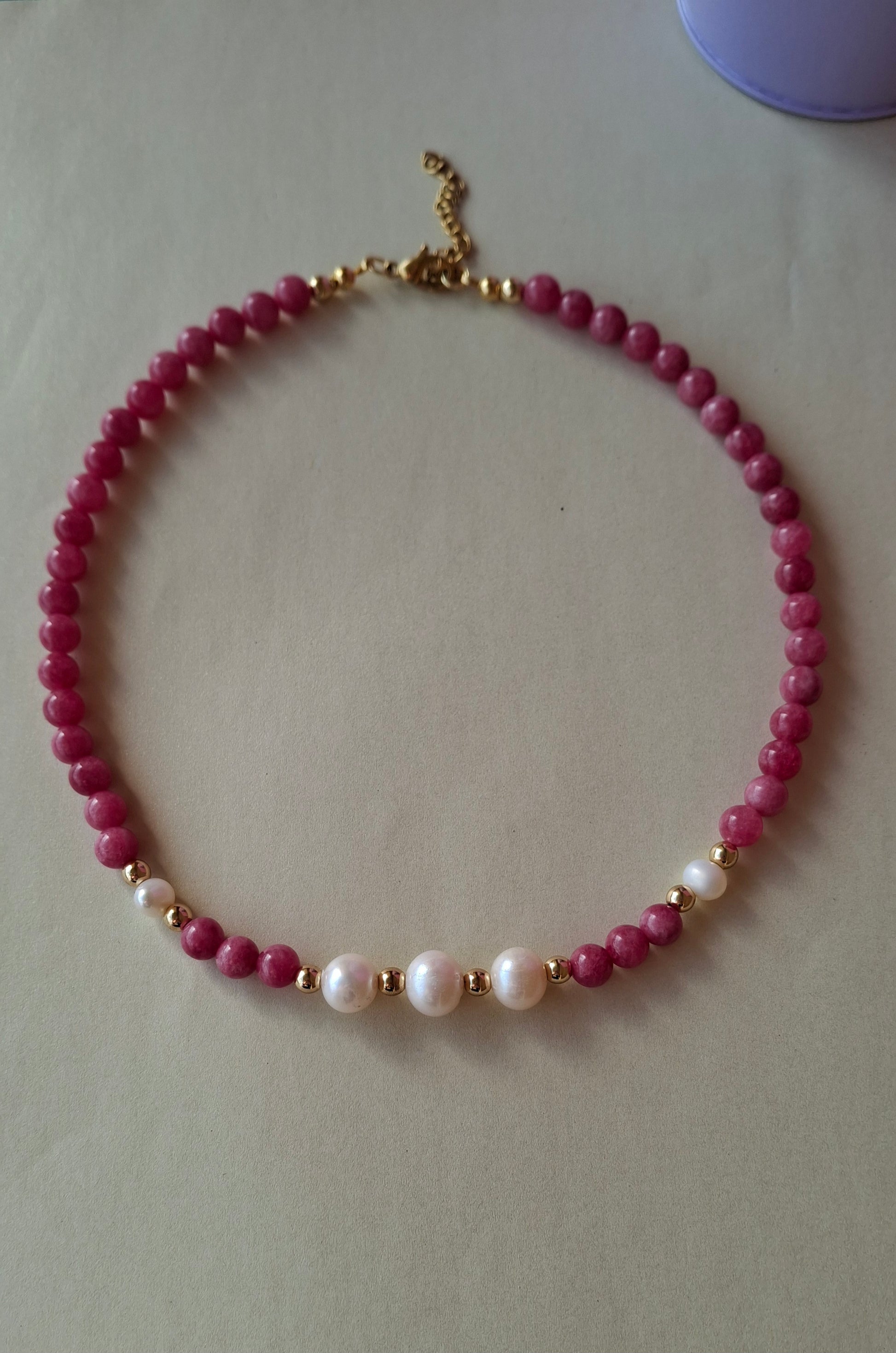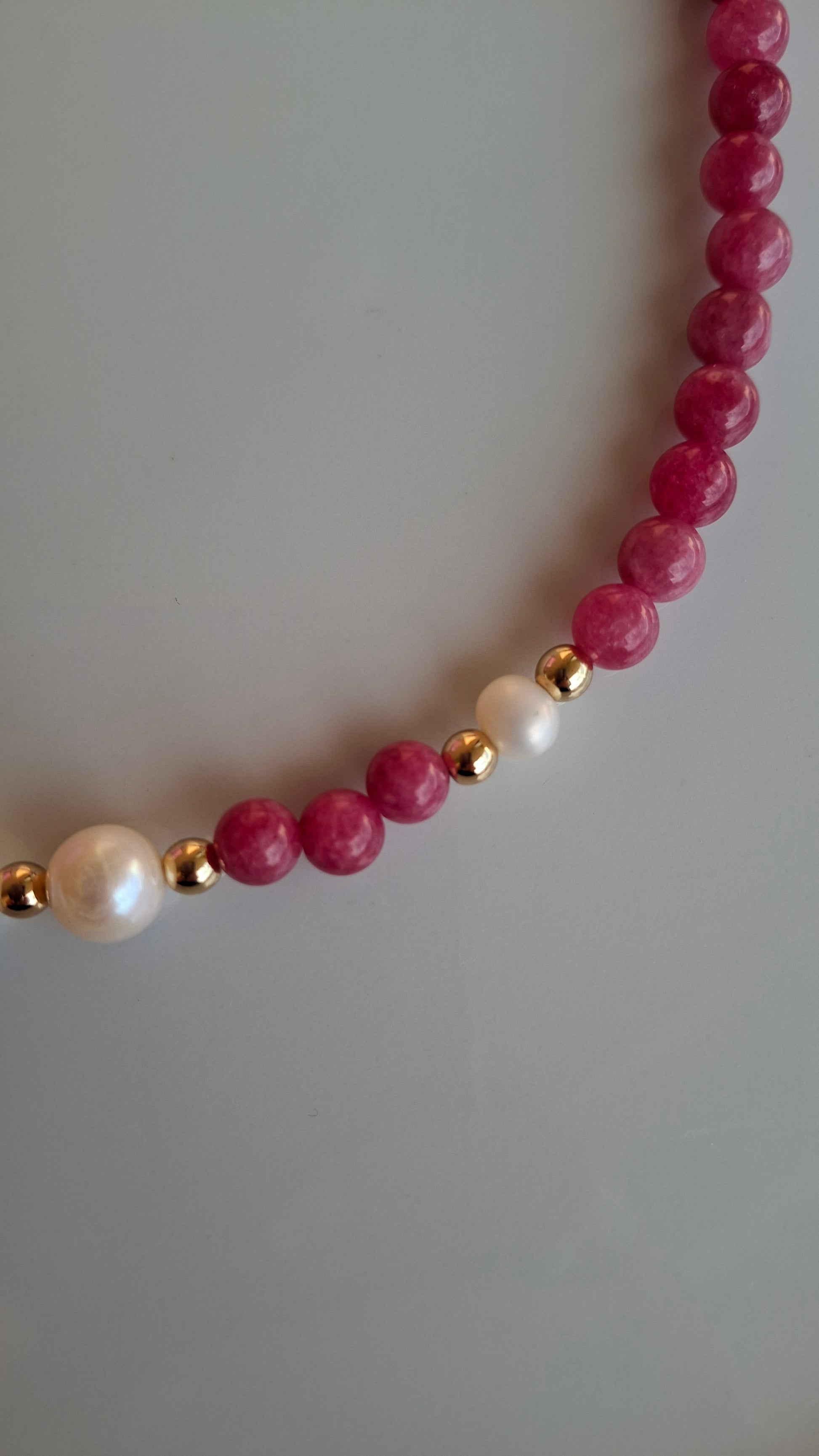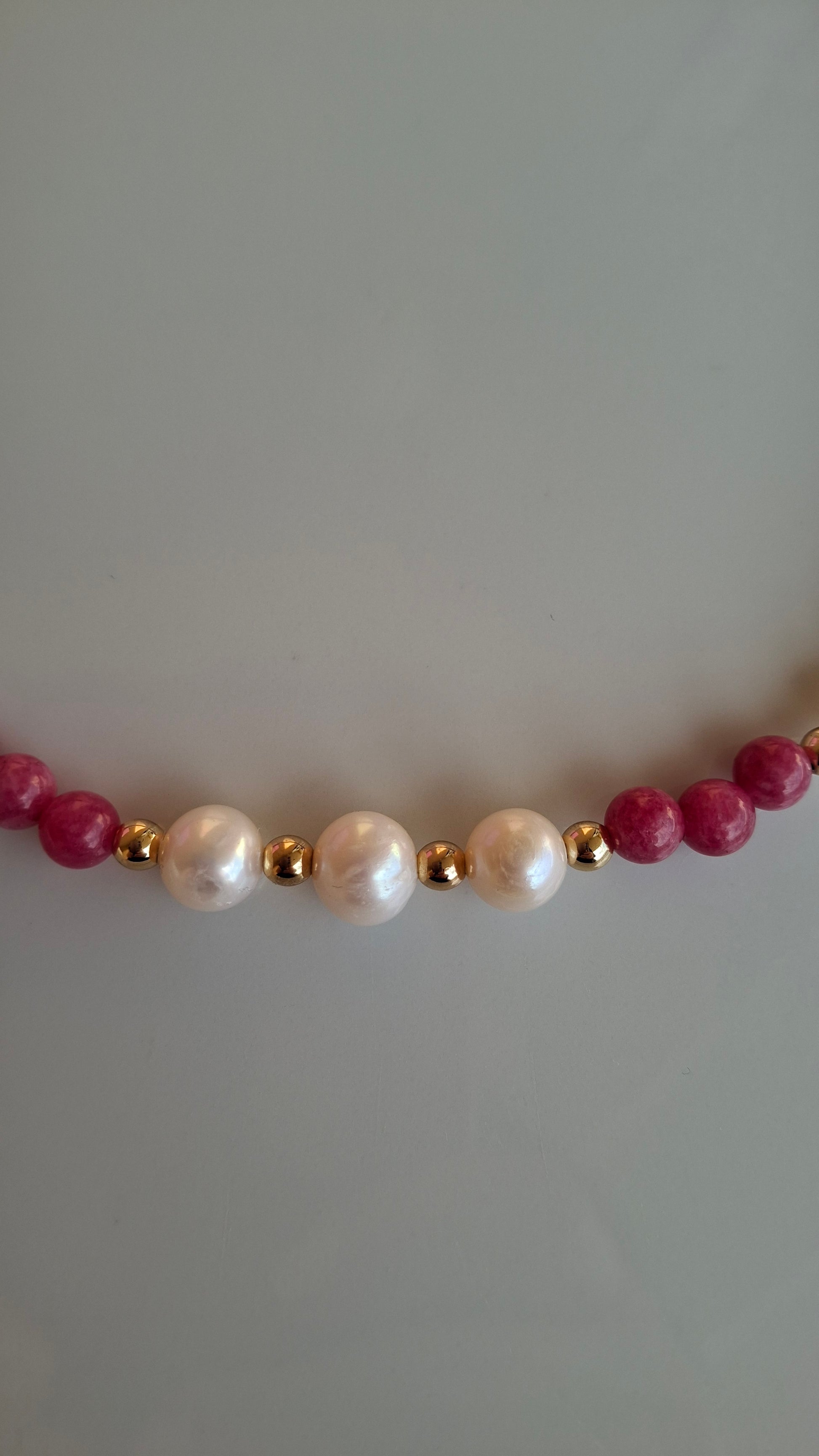 Girocollo realizzato con giada rosa scuro e perle di fiume bianche.